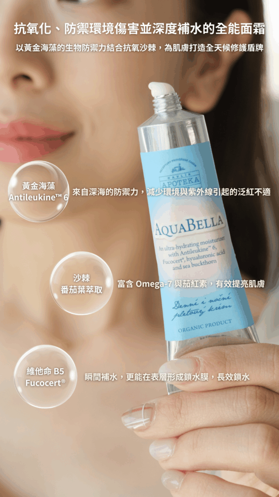 深層補水,質地輕盈超水潤,可舒緩紫外線輻射引起的發紅皮膚和刺激 。
